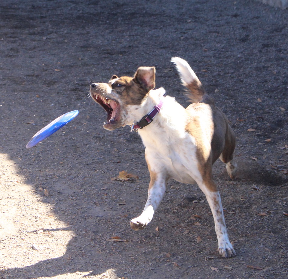 I took this photo while Nancy and Gunther were playing Frisbee when we were staying in Las Cruces, New Mexico, in November. The RV park had very long dog runs, which provided the perfect opportunity for Gunther to work on his Frisbee skills. We first discovered that he could catch a Frisbee while we still lived in Denver, and it’s important to keep his skills sharp. We’d originally had a red Frisbee as well, but I inadvertently tossed it over the rock wall of the dog run the first time I threw it (the very first time it was thrown at all, in fact). My Frisbee skills are not sharp like Gunther’s.