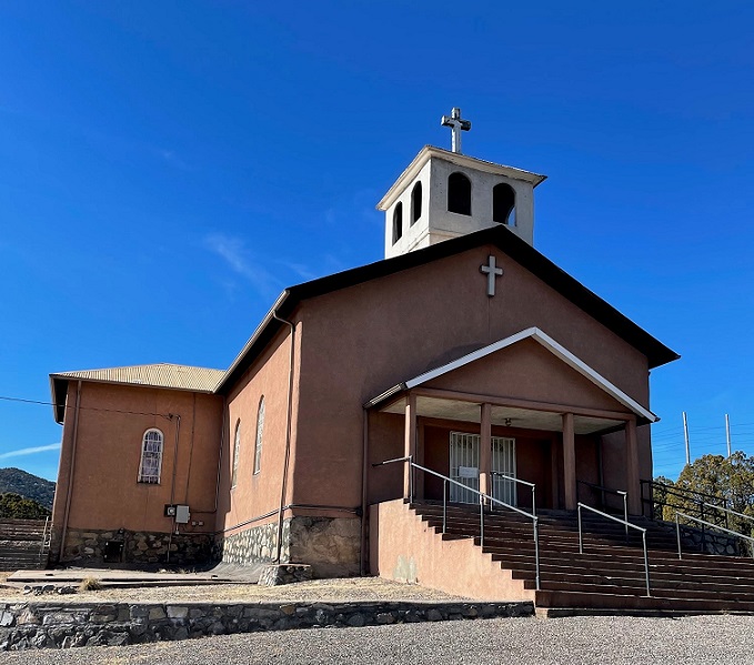 We drove to Hanover, New Mexico, which is a couple miles north of the Chino Mine. This is St. Anthony’s Catholic Church in Hanover; I couldn’t find much information about it, including when it started, online. The sign on the front door stated that services had been suspended until further notice, probably because of Covid-19.