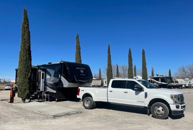 Our campground in Willcox, Arizona, had a single pencil pine planted next to each campsite.