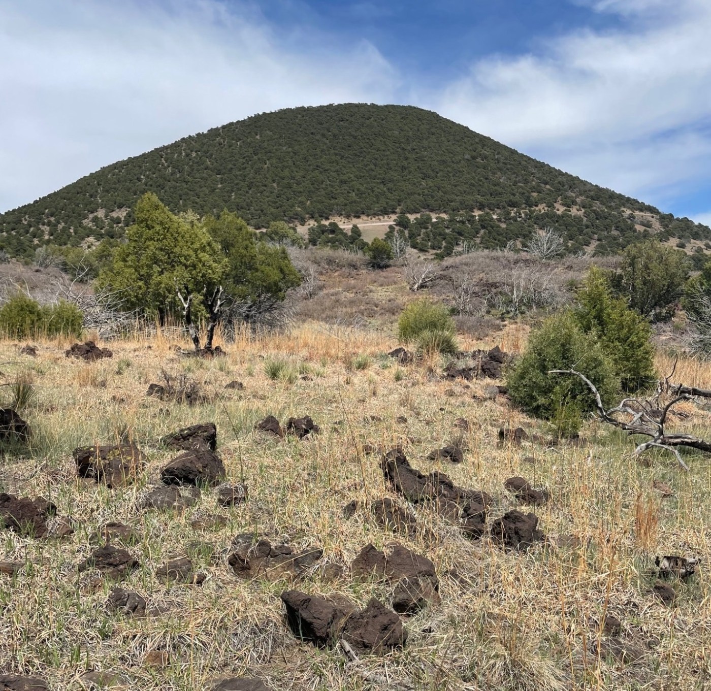 But let’s forget about people for a while and talk about volcanoes. Just below the now-quiet surface of the Raton-Clayton Volcanic Field, the Earth’s crust is relatively thin and unstable, so, in the distant past, magma roiling near the surface of the planet made its way upward in a variety of ways. Volcanic features are everywhere you look in the region: it’s home to about 125 cinder cones, volcanic necks, and a single shield volcano. Chances are that if a geologic structure rises higher than the surrounding grassland, it was once an active volcano.