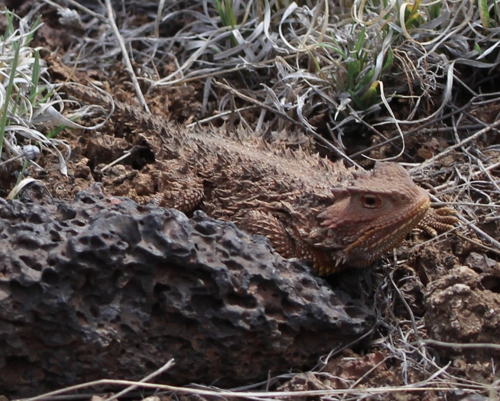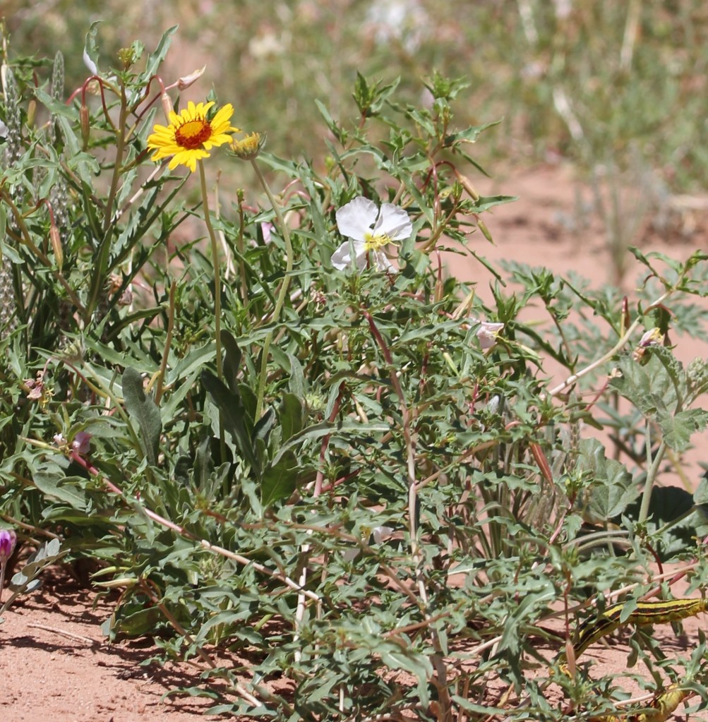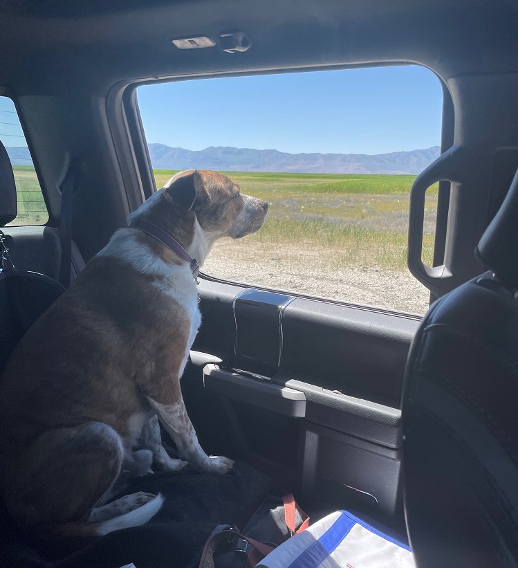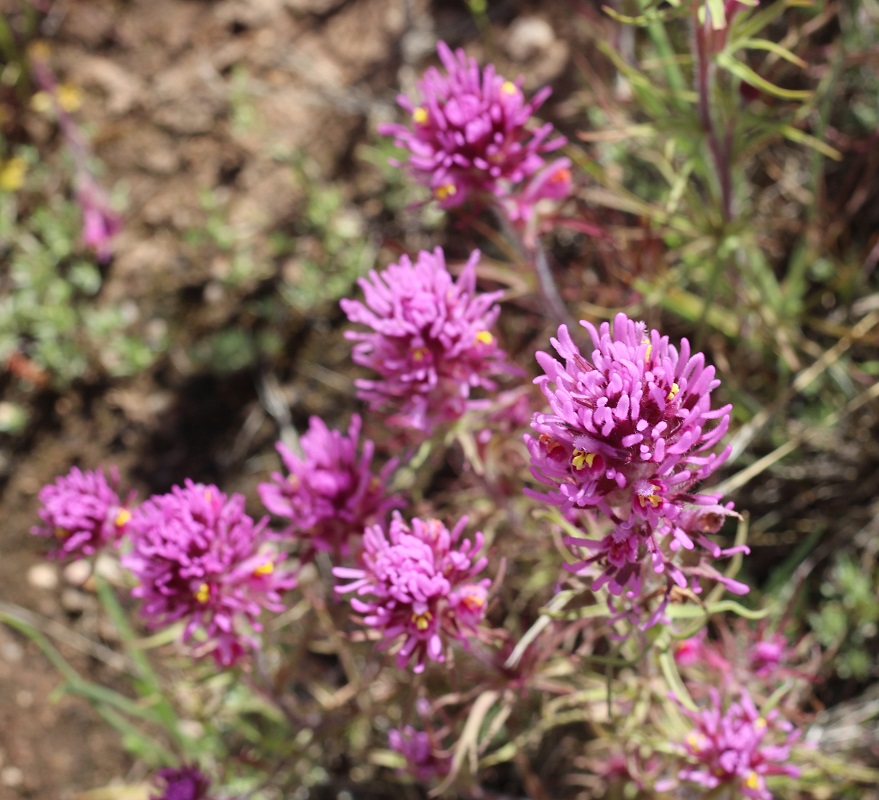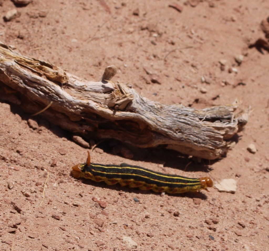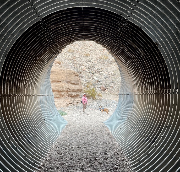 Nancy and I visited the site of the iridium layer late one afternoon in early May. I’d secured a permit to visit the site the day before at Raton’s municipal office. It turned out we didn’t really need a permit because it simply supplied the combination to a locked gate on the road and permission to park at the iridium layer site, and we didn’t think that there’d be room for the Goddard’s six-wheeled and 22-feet-long towing unit. We instead parked the towing unit downhill from the iridium layer site and hiked past the gate and then a mile or so to the site itself (the walk the day before from our campsite to the municipal office to acquire the permit, which we didn’t need, and back was 5.5 miles). Both were lovely walks (I saw a small group of mule deer in the front yard of a house in Raton on the way back to our campsite).