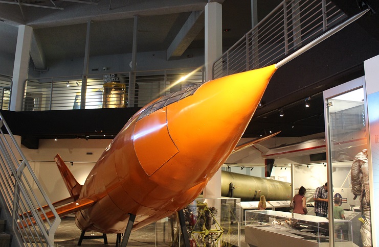 It’s safe to say that putting mankind in space, beginning with launching manned rockets into the sky in the early 1960s, progressing to the Apollo missions to the Moon that started in 1969, and continuing with programs like Skylab (1970s), the space shuttles (1980s), and the present-day International Space Station, started with weaponry development during the buildup to World War II. Simply put, many of the other rockets exhibited in the Cosmosphere wouldn’t have been possible without the development of the V-2.