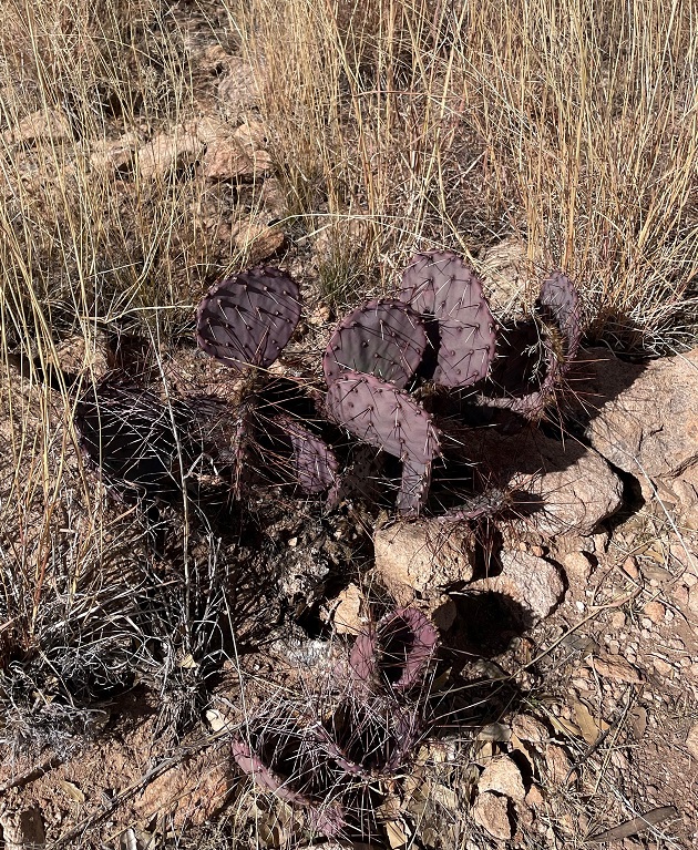 You’ll find plenty of prickly pear cactus at City of Rocks State Park in New Mexico, along with a wide variety of other plants. In the background, a vehicle provides a sense of scale for the namesake rocks near the park’s visitor center.