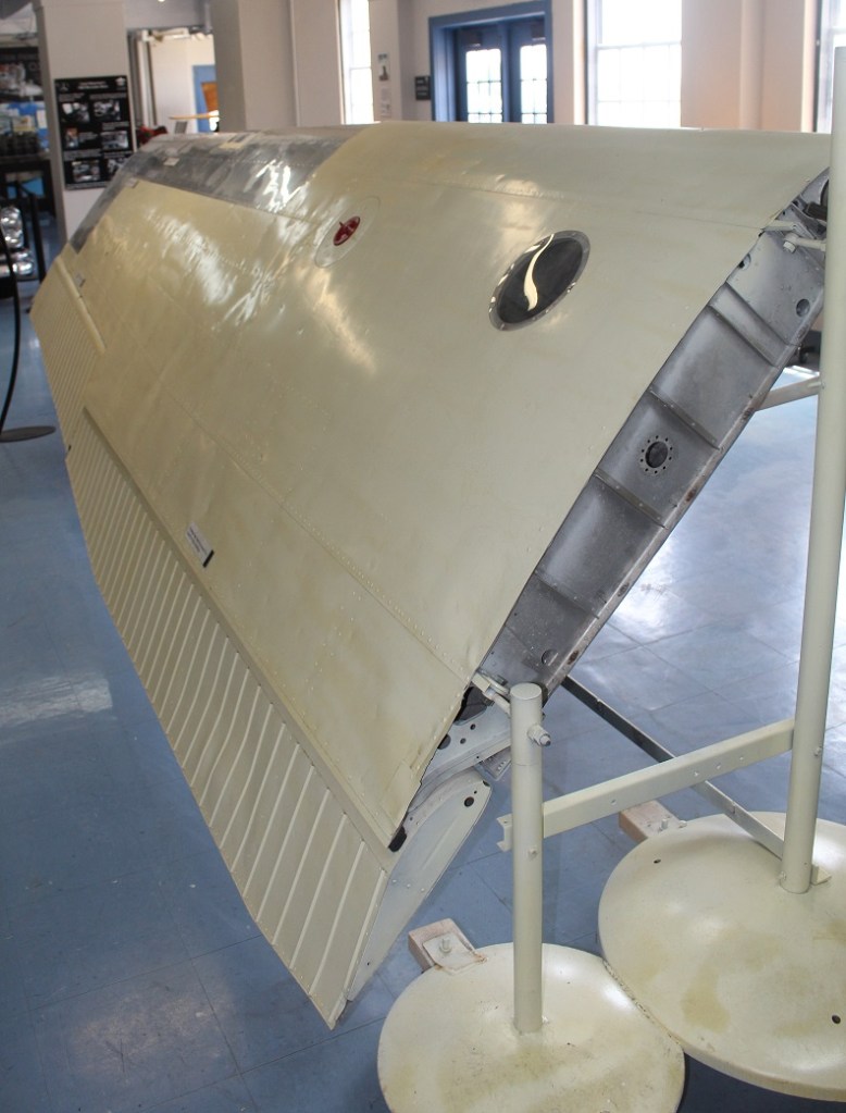 Along with engines and propellors, this section of the museum illustrated how aircraft wings work. The elliptical design of the wing provides lift when the airplane is pulled forward by a propeller or pushed from behind by a jet engine. This is the left wing of a 1964 Cessna 206. The six-seat Super Skywagon was introduced in 1964 and remained in production until 1986 when Cessna ceased production of single-engine aircraft. The company reintroduced the 206 in 1998 and the aircraft remains in production. The 206 model, renowned for its stability and reliability, could carry a thousand pounds of passengers and/or cargo, which led to it being known as “a flying pickup truck.” See below for a picture of a Cessna 206 with both of its wings, along with all its other parts.