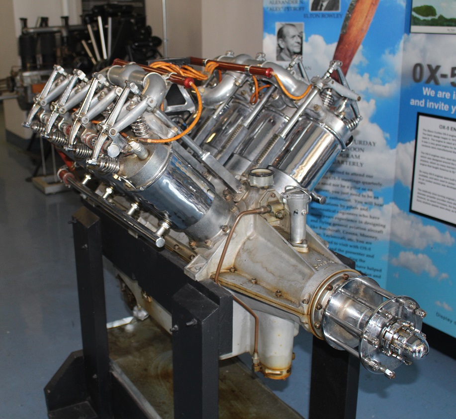 This 8-cylinder engine, producing 90 horsepower and 1,400 revolutions per minute, was the powerplant of the Curtiss JN-4 airplane. Known as the “Jenny,” the Curtiss Aeroplane Company developed the aircraft as a trainer for the U.S. Army in 1915. So many pilots learned to fly in the Jenny that it was called “the airplane that taught America to fly.” Curtiss built a total of 6,813 Model JNs, ending production in 1927. The airplane remained very popular following World War I and was heavily used in the barnstorming craze that led to the rise of civil aviation in the United States. This engine weighs 390 pounds, about a third of the Jenny’s total weight of 1,390 pounds. Nancy and I saw a replica of a JN-3during our visit to Pancho Villa State Park in New Mexico in December 2021. The state park is the site of the former Camp Furlong, at which the first military airfield in the United States was built in 1916;.