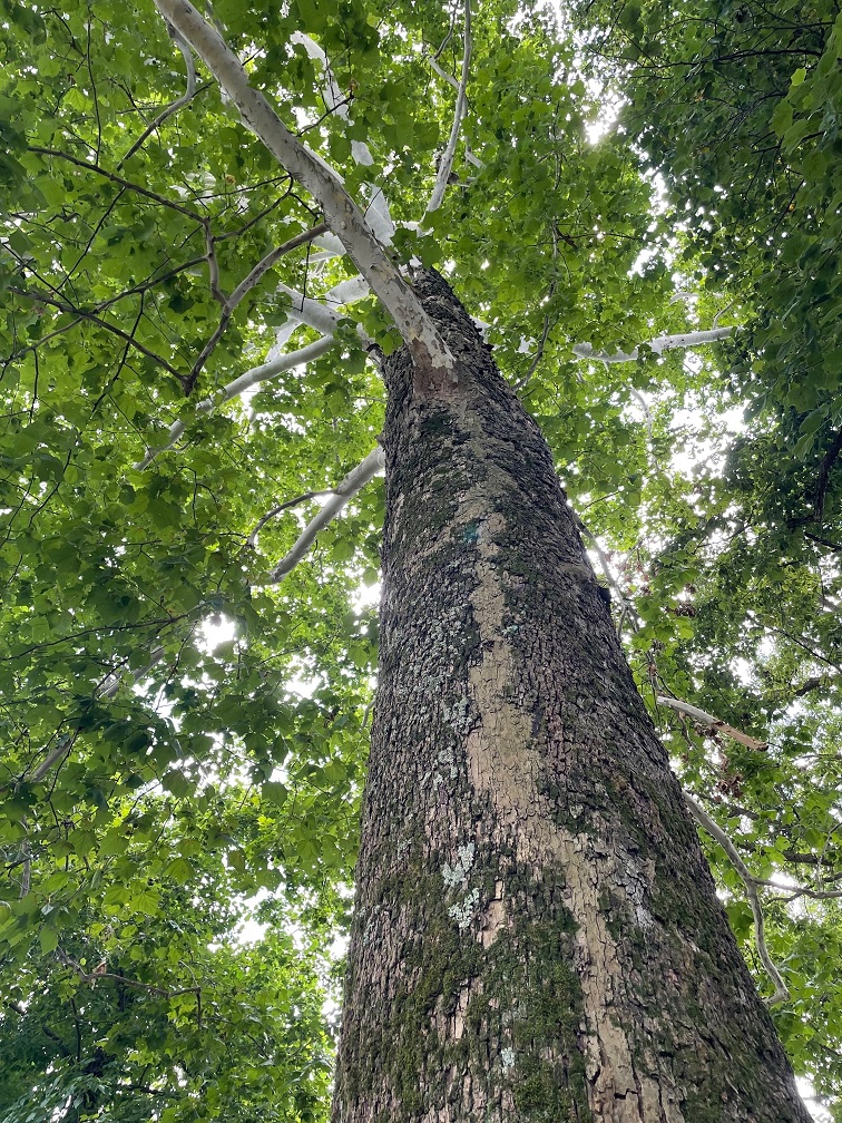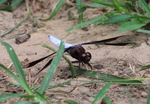 The museum at Chucalissa includes this interesting diorama representing what the scientists believe the village looked like, complete with homes and other buildings, as well as crops growing next to the Mississippi River.This view, looking west toward the Mississippi River on the other side of the trees, is the site of the village’s plaza as it looked on the day Nancy and I visited Chucalissa. The area is defined by three residential ridges. Archeologists believe construction of the large mound on the right side of the photo started around the year 1350, when Chucalissa’s population was at its peak. Researchers rarely find any artifacts in open areas like this. That lack of materials, along with the European explorers’ documentation of how southeast Native American peoples used open spaces in the 1500s, leads to the belief that the plaza was used much as town squares and parks are used today: a shared place for people to gather.We saw a lot of these dragonflies, called common whitetail skimmers (Libellula lydia), while walking around Chucalissa. The species, which measures about 1 3/4 inches long, prefers to perch on the ground. Male common whitetail skimmers, like this one, develop a white powdery substance, called pruinosity, on their abdomens; the females have brown abdomens. The males raise their bright abdomens to warn other males against intruding on their territories. This species is apparently found all across the country, but I’d sure never seen one.We’ve enjoyed seeing new animals in different parts of the country, and we’ve also had the opportunity to see plants that are new to us. This beautiful tree growing near the Chucalissa visitor center is an American sycamore (Platanus occidentalis). They can grow up to 100 feet tall and have the largest trunks of any native American tree, with some specimens having trunk diameters up to 15 feet. To accommodate that growth, the tree often sheds its bark in large pieces. The American sycamore is very common in the eastern part of the country, but the furthest west it grows is the eastern parts of Kansas, Oklahoma, and Texas. American sycamores commonly live for 200 years, and some can grow for more than twice that. The wood is used to make butchers’ blocks, as well as furniture and musical instruments.
