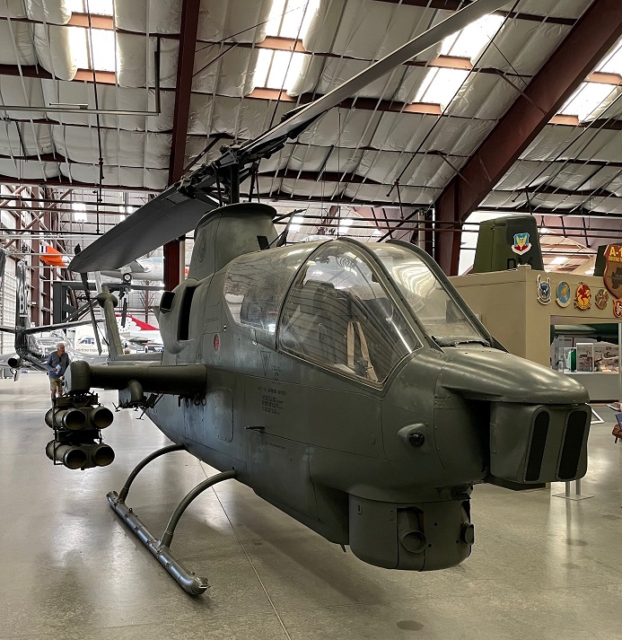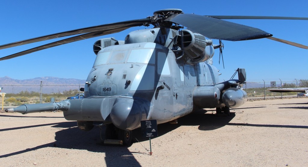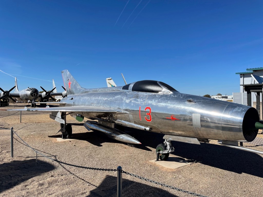 I finally remembered to take a picture of a museum’s exterior so I’ll include this photo. That’s a Douglas A-4C Skyhawk in the foreground. It was a carrier-based bomber produced by Douglas Aircraft Company, and later McDonnell Douglas, from 1954-1979. The Skyhawk, which played active roles in conflicts ranging from the Vietnam War through the Falklands War, could carry the bombload equivalent of a World War II-era Boeing B-17 Flying Fortress. It had a top speed of 670 MPH; about 3,000 were produced.This was one of the many, many formations of aircraft that flew over the saguaro cactus of Tucson in the days that we were camping there. The pilots were training for upcoming airshows, taking off and landing at nearby Davis-Monthan Air Force Base. They usually flew in groups of three or four, and some of the formations included vintage aircraft like this A-10 Thunderbolt with P-51 Mustangs and others featured current airplanes like the F-22 Raptor flying alongside World War II and Korean War-era craft.The aircraft on the outside grounds of the museum are lined up in long, long rows, grouped mostly by their era. The museum is a big complex — Nancy and Gunther and I walked four miles during our visit that day. That’s a Vought F-8 Crusader, produced beginning in 1957 and retired as a fighter by the U.S. Navy in 1976, in the foreground. It was also a carrier-based jet, and the last American-made fighter to use guns (20mm cannons) as a primary weapon. Crusaders, which could reach 1,227 MPH (Mach 1.8, or 1.8 times the speed of sound), were used to take low-level photographs of missile installations in Cuba during the Cuban Missile Crisis in October 1962; they saw most of their action later during the Vietnam War.Rotary-wing aircraft fans aren’t left out: here’s a row of helicopters starting with the Sikorsky UH-19B Chickasaw. This cargo helicopter was introduced into U.S. Air Force service in 1950 and retired by the U.S. Navy in 1969. The UH-19 had a crew of two, could carry 10 troops, and had a maximum speed of 101 MPH. This particular UH-19B is one of about a dozen Chickasaws on current display in the United States.A museum visitor and her ill-behaved dog take a look to the skies at the ongoing training operations while standing in front of another big helicopter, the Mi-24D Hind-D. This Russian-made gunship has been in operation since 1974 and has seen action in nearly every conflict since then, including the Soviet war in Afghanistan (1979-1989), the Iran-Iraq War (1980-1988). the Gulf War (1991), and in this year’s operations in Ukraine (both the Russians and the Ukrainians have Mi-24s). The Hind has a maximum speed of 208 MPH and has a substantial range of armament capabilities. Almost 2,700 Hinds have been produced, and armed forces all over the world have them in their inventory. They’re very menacing aircraft; it’s unfortunate that the paint used to protect the canopy is nearly the same color as the rest of the helicopter.One more widebody whirlybird: this is the Sikorsky MH-53M Pave Low, a USAF combat search and rescue helicopter in service from 1974-2008. The Pave Low had a crew of two pilots, two flight engineers, and two gunners, with a top speed of 200 MPH. It weighs 16 tons empty.From a design standpoint only, I love me some MiGs. This product of the Russian Mikoyan-Gurevich design bureau is a MiG-29 Fulcrum, which entered Soviet Air Forces service in 1982 and is still in use by a couple of dozen air forces today (including those of Russia and Ukraine). It was developed to compete with U.S. fighters like the McDonnell Douglas F-15 Eagle and the General Dynamics F-16 Fighting Falcon. The Fulcrum has a top speed of 1,500 MPH (about two times the speed of sound, or Mach 2). This particular aircraft is one of seven MiG-29s currently on display in the United States.Here’s an earlier MiG, and one of my favorite aircraft designs as well, the MiG-21 Fishbed. This is the most-produced supersonic fighter in the world, introduced in 1955 and still in use by some countries’ air forces. It has a top speed of 1,350 MPH. Almost 11,500 MiG-21s were built, and we’ve seen two of them: we saw another of these aircraft on display in Albuquerque, New Mexico, at the National Museum of Nuclear Science & History in November 2021.This big boy (it’s almost 20 feet tall and weighs 31,000 pounds empty) is the English Electric Lightning, introduced in 1960 and retired by the Royal Air Force in 1988. This is the only British-designed fighter that reached Mach 2. It was developed to protect the United Kingdom from potential attack by Soviet nuclear bombers. This particular Lightning is one of only two on current display in the United States.Staying with European manufacturers for now, here’s a Dassault-Breguet/Dornier Alpha Jet, a fighter in production from 1973 to 1991 and built cooperatively by France’s Dassault Aviation and Germany’s Dornier Flugzeugwerke. France’s air force used the Alpha Jet primarily as a trainer, and Germany’s air force used it as an attack jet. About 500 aircraft were built; the jet, which had a two-person crew, had a maximum speed of 620 MPH at sea level.I didn’t know that Hawker Aircraft, which built the WW II-era Hurricanes that, along with Supermarine Spitfires, ably fended off German attacks during the Battle of Britain, also built jets. This is the Hawker Hunter, which was introduced in 1954; the last combat craft was retired (by the Lebanese Air Force) in 2014. The Hunter had a maximum speed of 623 MPH. Besides the Royal Air Force, 21 other overseas air forces used the Hunter.The Pima Air & Space Museum also has a good variety of civilian aircraft. This is a Cessna 172M Skyhawk. The Cessna 172 is the most-produced aircraft ever built: since 1956 more than 44,000 have been produced by the Cessna Aircraft Company of Wichita, Kansas, and its partners. It has a cruising speed of 140 MPH, with room for one pilot and three passengers. In 1911, a far