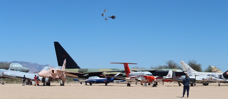 Gunther was able to join us on the second of our two visits to the Pima Air & Space Museum in Tucson. The exhibits that we saw on March 6 were all outside. It was a lovely day and there happened to be an airshow training program taking place at a nearby airfield, so we saw plenty of planes on the ground and in the air. As I wrote in the posting about our first day’s visit, there are hundreds of airplanes on the grounds of the museum, and taking them all in, even with a two-day pass, is a lot to handle.