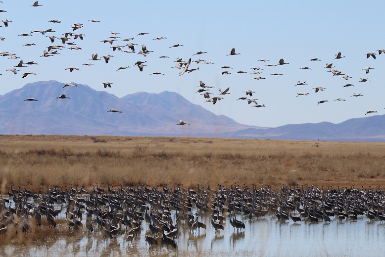 However, Lake Cochise is best known as a primary winter stop for migratory sandhill cranes. Many thousands of cranes spend the winter each year around the lake, with the highest populations present between the months of November and February. In 2008, the Arizona Game & Fish Department counted more than 36,000 sandhill cranes in the area – the highest number ever recorded.