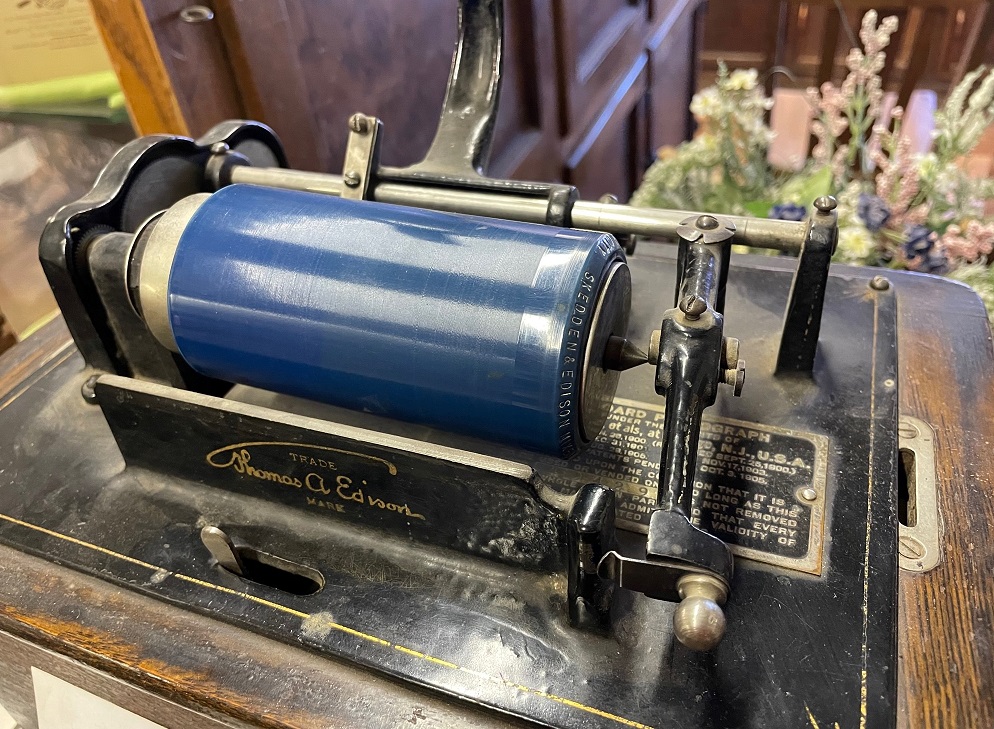 This bell, forged in 1890, was installed in a brick Latter Day Saints church that had been built in Pima in 1888. It’s perhaps two feet tall. A placard nearby has a recollection from 1981 of the bell by a resident of Pima, Laura McBride Smith, who was present when the bell was first rung 90 years earlier: “When that church bell in that building gave its first taps, I heard it. I climbed upon a big double gate where teams and people went in and out across the street west of the Pima Church house, and that is where I first heard the lovely sweet tones and it was first broadcast all over Pima. It was the first bell in the Gila Valley. It rang ’till the sun went down. It is something I have never forgotten. I am sure there isn’t another person alive today who heard that bell first ringing in 1891. Folks, its tone is just as sweet today as always, and to me, when this bell was poured hot in its case they poured a portion of ‘witchery’ into it and closed up the opening while hot and it could not get out and that ‘witchery’ potion will always be there. My children and everybody knew how much time they had to get to church or school the year around. What a blessing that old bell was to the whole community!”Any museum in the western United States worth its salt will have a display of historic barbed wire, and on this point the Eastern Arizona Museum does not disappoint. This case, about six feet tall, includes information about the manufacturer, style, and date of each example.I really like the simple burlap and wood presentation of this exhibit, which is located on top of the larger case seen above. I used to have a DYMO label maker when I was a kid – I never forgot what the things in my bedroom were called back then because everything was labelled.Still more examples of barbed wire from the 1870s and 1880s. Some of these styles look like they were quite a lot of work to manufacture, especially in the quantities needed to fence the American west. I’m just happy that everyone shares my appreciation of barbed wire.Let’s, with regret, set aside our examination of barbed wire for a bit. Here’s a phonograph that belonged to Thomas Hollis Dodge, who was born in Pima in 1897. This phonograph was the first one in the Gila Valley. The recordings on the wax cylinders didn’t have the names of the artists until 1910. As I’m writing this, I’m listening to music being transmitted into the Goddard from satellites positioned more than 22,000 miles above Earth and I have access to 95% of the catalog of human song recording, including the one on this blue cylinder if only we knew what it is. For now, I’ll have to be happy with “Be My Baby” (The Ronettes, 1963). And I am.The placard on this manual foot-pump organ states that it was purchased by Adiel Sanchez and Reyes Colvin Sanchez in 1915 and used many years in a church in Sanchez, a town about 20 miles west of Pima, and later used in their home. I love the wear marks on the pedals, and I’m sure the people playing this organ made beautiful music.The placard for this item notes that its first owner, W.W. Pace, “had to put up his own lines to have this telephone.” It’s one of the first telephones installed in Thatcher, which is a town just west of Safford on the way to Pima. Nancy’s family will note that this phone is a fine Western Electric product. I took all of these photos at the Eastern Arizona Museum with my phone, which doesn’t have the beautiful wooden construction of the model shown here.Here’s something I found really interesting: this is the wedding photo of Albert M. Haws and Alice Cluff Haws from October 30, 1911. They’re a very handsome couple. A trunk on the floor under the photo contains Alice’s wedding dress and clothes worn by some of their later children. The interesting part is …… next to the 1911 photo above is this program from the celebration of the couple’s fiftieth wedding anniversary on October 28, 1961. Albert and Alice were married for six years before the United States entered World War I, and celebrated their 30th anniversary a few months before the bombing of Pearl Harbor. They were married eight years after the Wright Brothers’ first powered flight at Kitty Hawk, and, a few months before their 50th anniversary, the Soviet Union and, later, the United States sent men via rockets into space for the first time. Still a very handsome couple, and I appreciated that the family shared its history with museum visitors.
