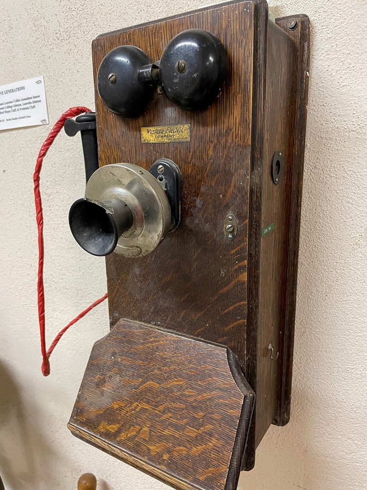 Much of the museum’s collection is in a building called Cluff Hall, which is the oldest building in Pima. It has been connected to the former bank building just to its south as part of the museum. Moses Cluff constructed the building from limestone in 1882. It served as Pima’s cultural center, hosting plays, concerts, political debates, dances, and meetings of the Latter Day Saints (although it was never formally dedicated as a house of worship). The first kindergarten class in the Gila Valley was held in Cluff Hall in 1901, with tuition of five cents a day. In 1912, two immigrant brothers from Lithuania opened a clothing store but their endeavor was ended by the country’s entry into World War I a few years later. The two brothers later opened a department store in Safford that was in business until the 1960s. As with many old buildings, Cluff Hall was home to a huge variety of businesses and activities.