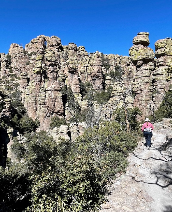 Chiricahua National Monument, established in 1924 about 35 miles southeast of Willcox, Ariz., was part of the Apache band’s homeland. Today it’s a federally protected area measuring just under 20 square miles in area containing forested slopes, incredible rock formations, and sweeping vistas of southeast Arizona. Nancy and I visited the monument on Feb. 13, 2022. Since dogs aren’t allowed on the monument’s trails, Gunther took a break from sightseeing for the day.