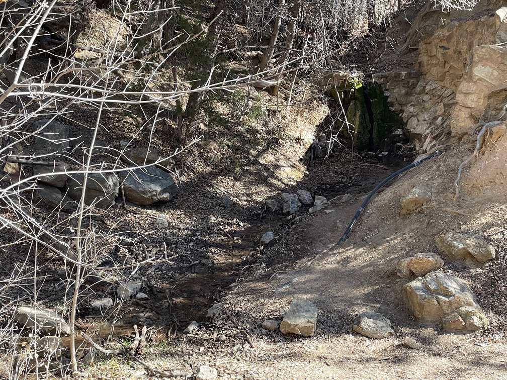 This is what all the deadly fighting over the decades at this site was about: Apache Spring, the only year-round source of water in the region. Archeologists have found pottery fragments around the spring that suggest the Mogollon Native Americans were here many years before the Apache came to this area.Apache Spring averages a flow of about 5 gallons per minute, but that can vary significantly depending on the time of year and recent precipitation amounts. It’s not a big outflow, but it’s wet and that’s all that matters. This little rivulet a few yards from the mouth of the spring is about a foot wide. Fort Bowie is a quarter-mile further down the trail.
