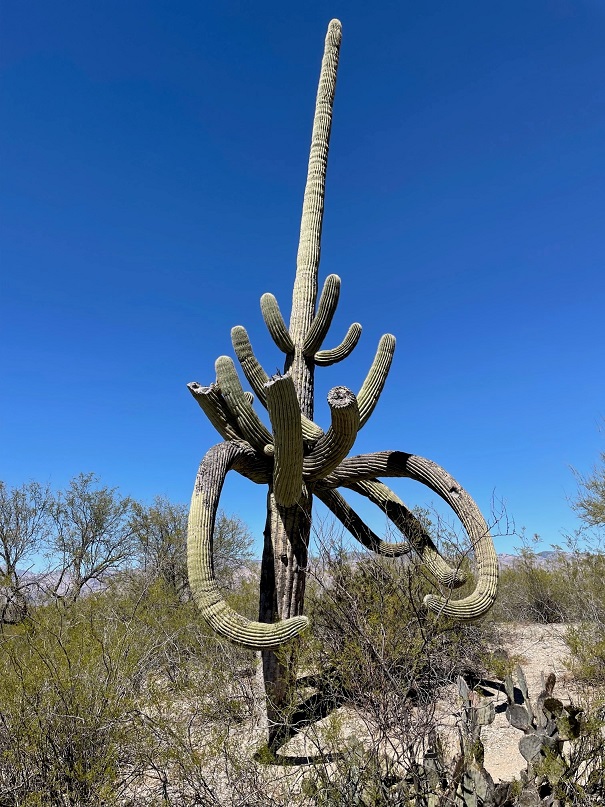 We needn’t have. We saw a lot more saguaros on that trip. They’re fairly common in the Tucson area, but not as common as they used to be because of land development and agricultural practices. Protecting a forest of saguaro cactus was the impetus behind the establishment of Saguaro National Monument in 1933, and the area was elevated to a national park in 1994.