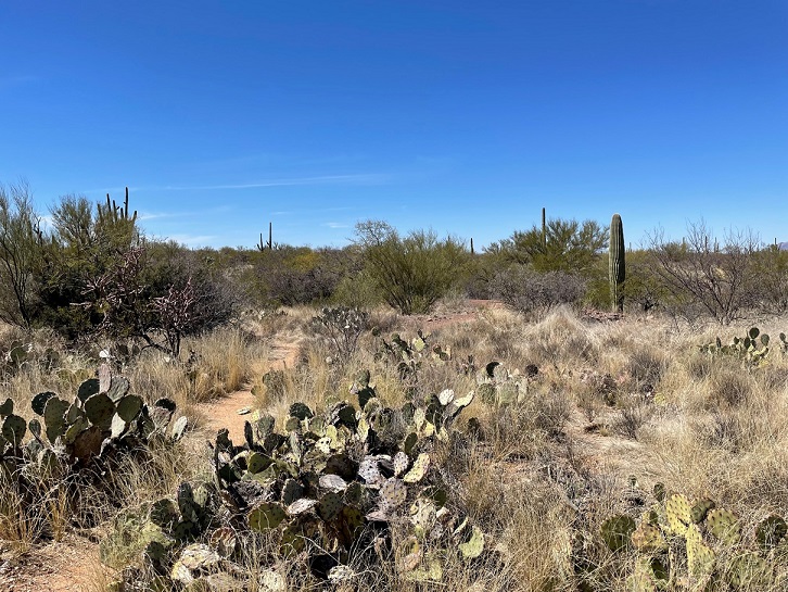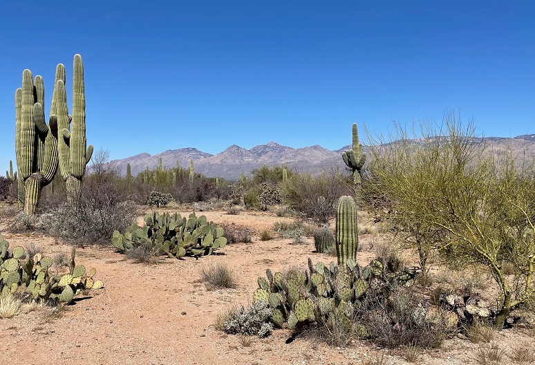 The national park is divided into two districts, Rincon Mountain on the east and Tucson Mountain on the west, with the city of Tucson in the middle. We visited the Rincon Mountain District in mid-March, and enjoyed a five-mile loop hike (with only 185 feet gain in altitude) on the Loma Verde Trail.