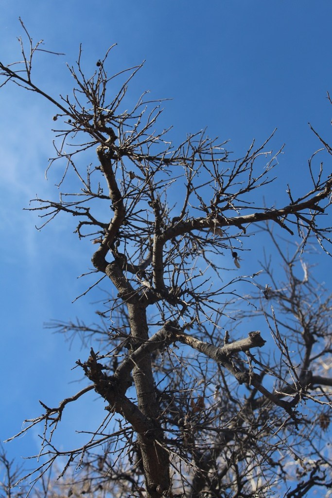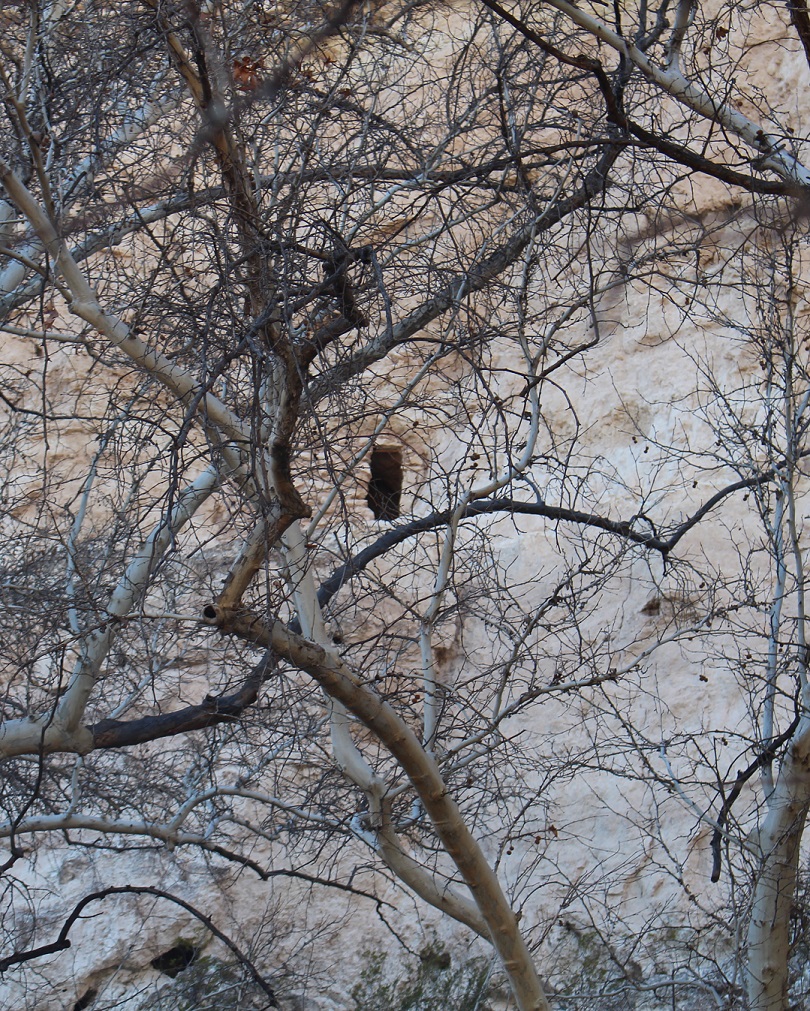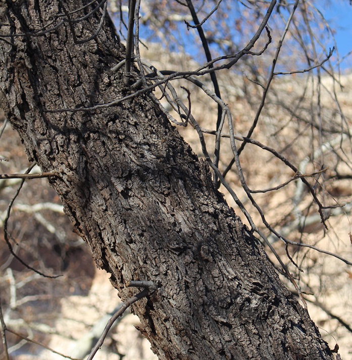 The modern structure at the bottom of the photograph is a kind of amphitheater in which U.S. national park rangers provide talks about the history and culture of Montezuma Castle. I wish we could have seen the castle with better lighting; as always, I blame the sun.In autumn, the netleaf hackberry (Celtis laevigata) produces berries with high levels of calcium. The leaves are used to treat digestive disorders, and the bark of the tree can be woven into sandals.