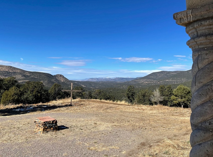Nancy and I visited Gila Cliff Dwellings National Monument on a Sunday in mid-January. Because dogs aren’t allowed on the trail to access the dwellings, we decided to board Gunther that weekend. This national monument is very isolated: despite being only about 45 road miles from Silver City, New Mexico, the drive takes about an hour and 45 minutes because of a large number of extremely tight turns.